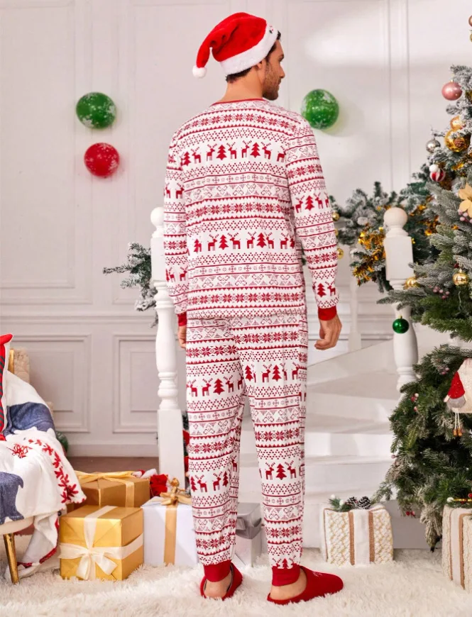Christmas Pajamas Features: Classic Matching Family Xmas feature notch lapel collar, chest pocket, long sleeves, button closure, easy to put on and off. The full-length pants design with an elastic waist for a comfortable fit, allowing you to relax in style without feeling constricted.