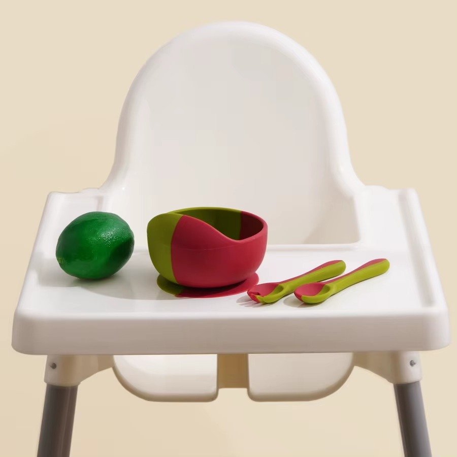 BABY BOWL – The silicone baby bowl has a big suction cup that could stick on most of the high chair tray and a smooth flat surface. Our suction bowl has a raised edge designed. It could prevent some spills and keep food in the bowl. Also, the raised edge aids in the recollection of food during the meal.